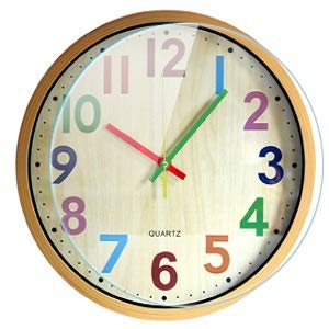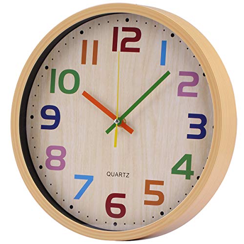 1. Hartes Holz aussehendes Kunststoffmaterial & gute Sicht: Große bunte Wanduhr mit großen Zahlen ist klar zu lesen.