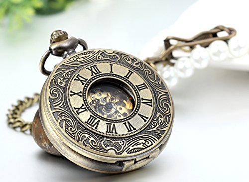 Vintage Taschenuhr Herren mit Kette Quarz Taschenuhr Transparent Mechanische Taschenuhr Retro Uhr Herren Damen Handaufzug Römische Ziffern Skelett Uhr mit Steampunk Kette