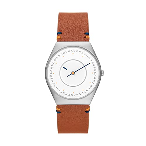 Skagen Grenen Watch for Men, Solar-Powered Two Hand Movement with Stainless Steel or Leather Strap