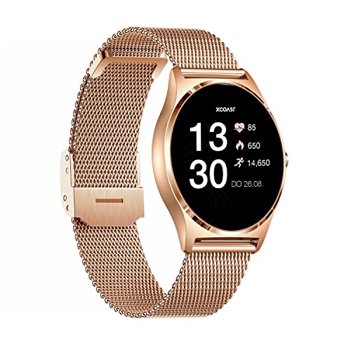 XCOAST JOLI Damen Smartwatch Rose – 1,3 Zoll AMOLED, iOS und Android, sehr flach, 21 Sportarten, Edelstahl, Herzfrequenz, Blutdruck, Blutsauerstoff, Schlaf, 9 Tage Akku